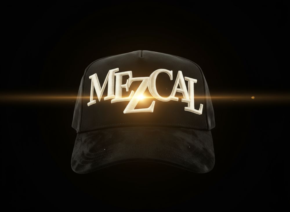 The MEZCAL cap — a statement of refinement. Black suede meets oversized ivory embroidery in a design that strips everything unnecessary and leaves only power, silence, and precision.